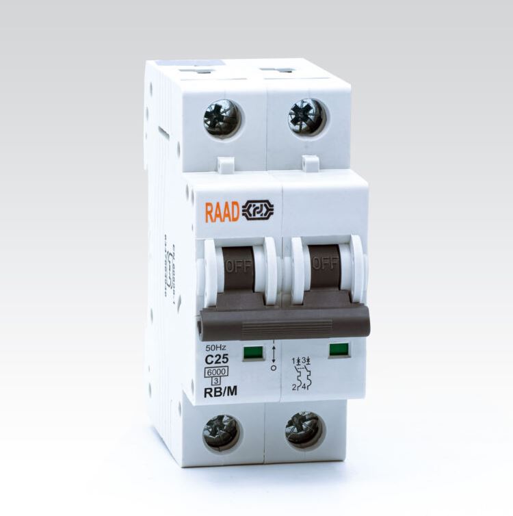کلید مینیاتوری2 پل با جریان25آمپر و جریان قطع 6 کیلوآمپر ، رنج AC و منحنی قطع C